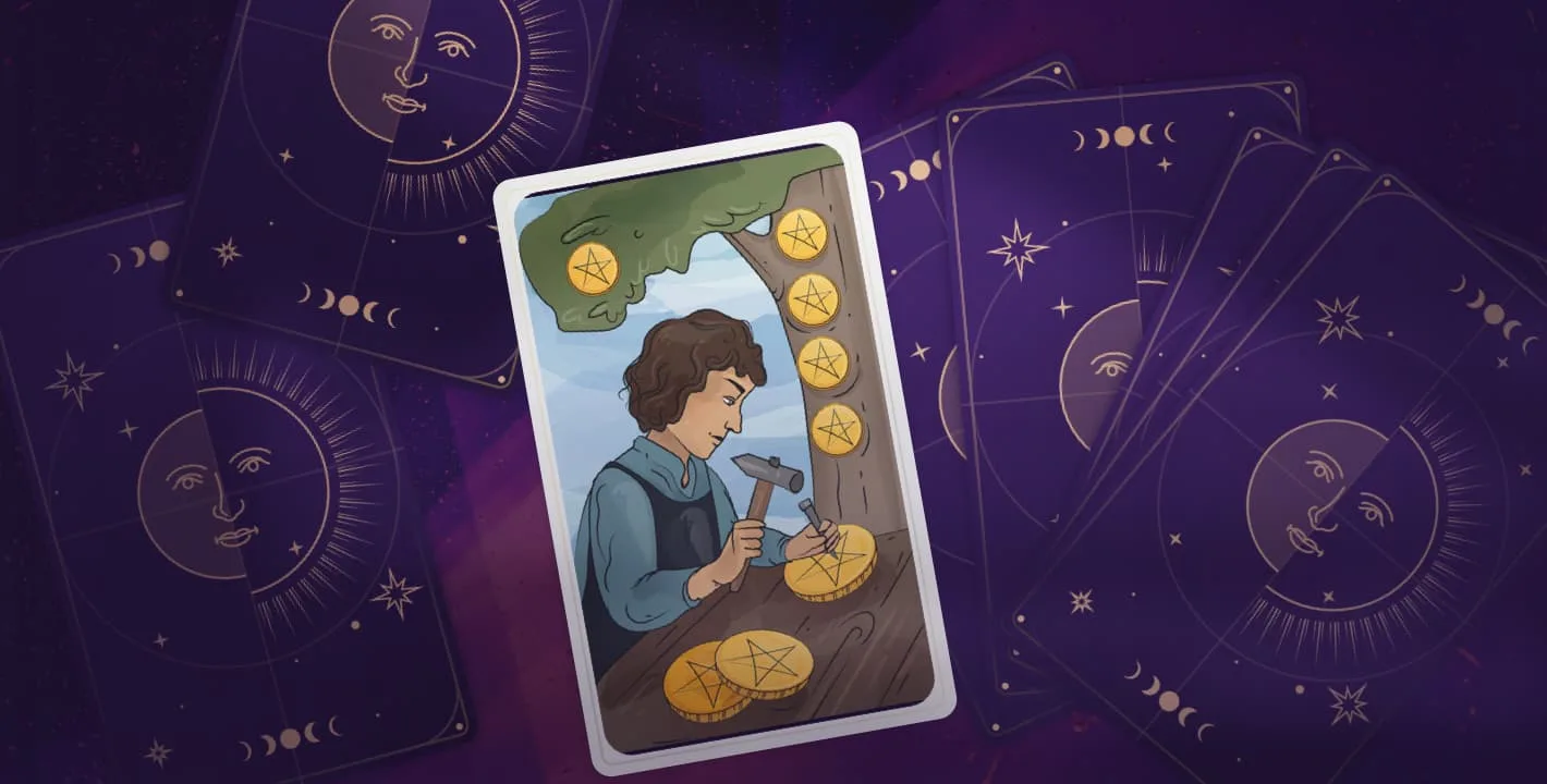 The Eight of Pentacles is strongly related to the Virgo zodiac sign. It’s the first decan of the sign. If you think about ancient interpretations, the sign relates to women responsible for keeping sacred flames alight.