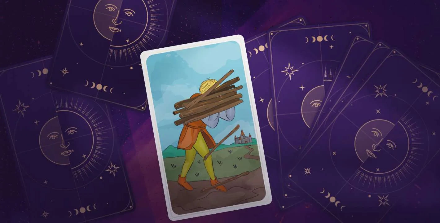 The Ten of Wands shows a man struggling to carry a burden made of wood. Those are the ten wands tied together. He’s not far from the town either. The simple and direct explanation is simple to understand, as the card represents someone who has been through a lot of obstacles before reaching success.